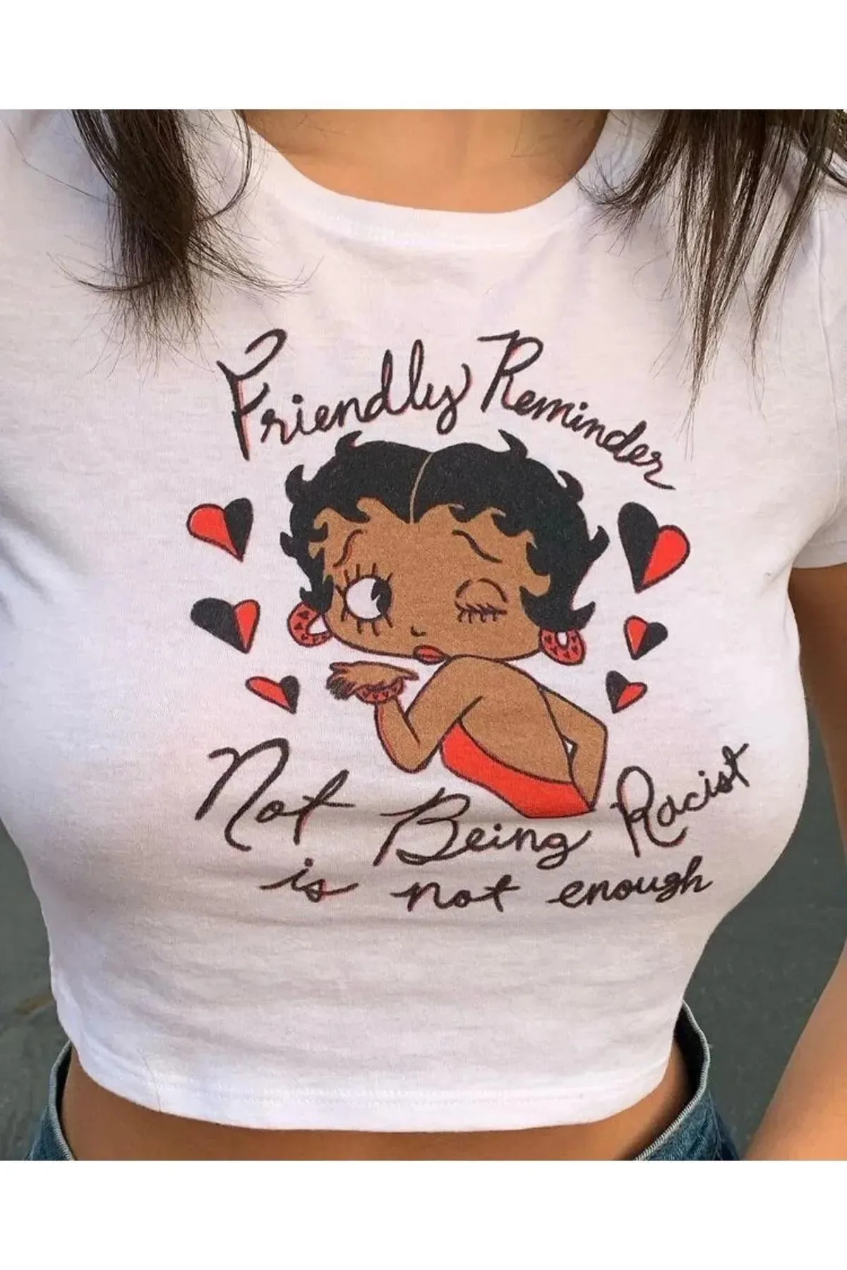 Y2k Beyaz Çizgi Film Karakter Betty Boop Baskılı Crop Body