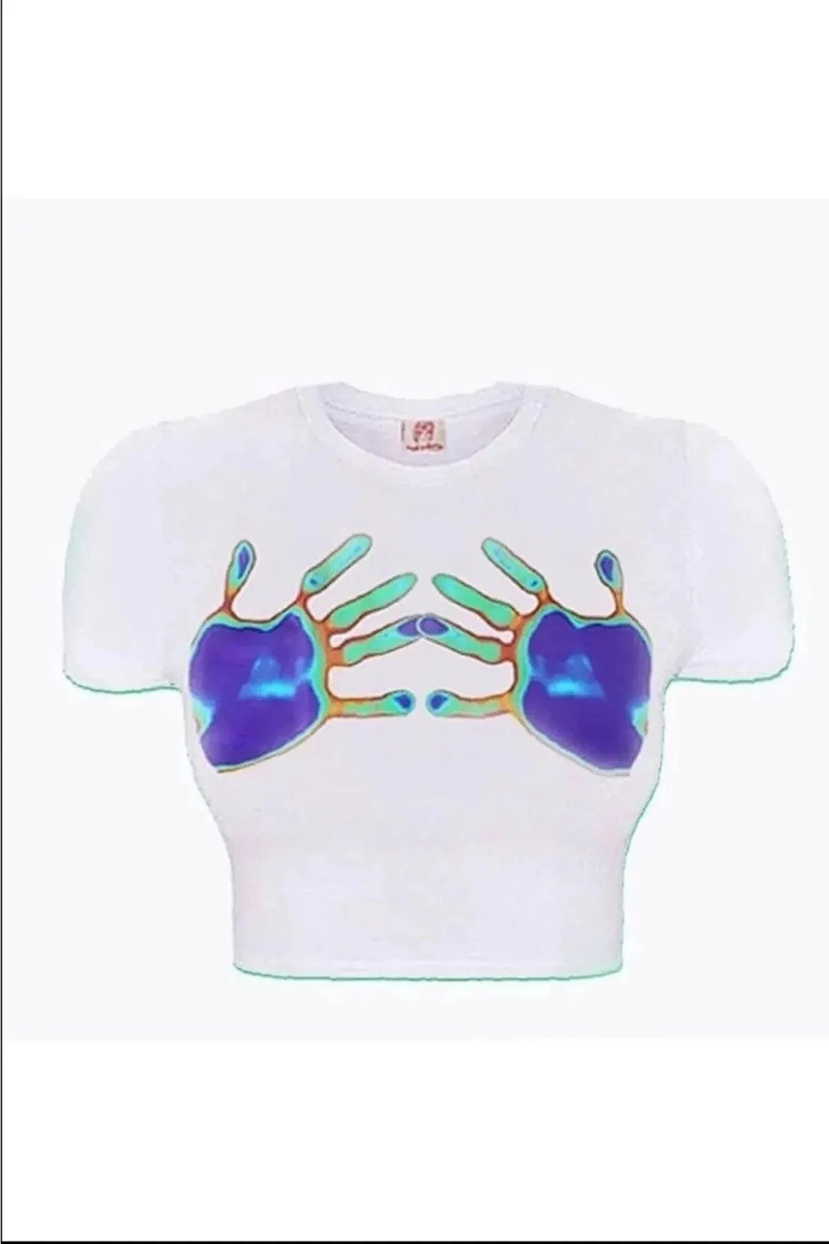 Y2k Beyaz Renkli El İzi Desenli Crop Body