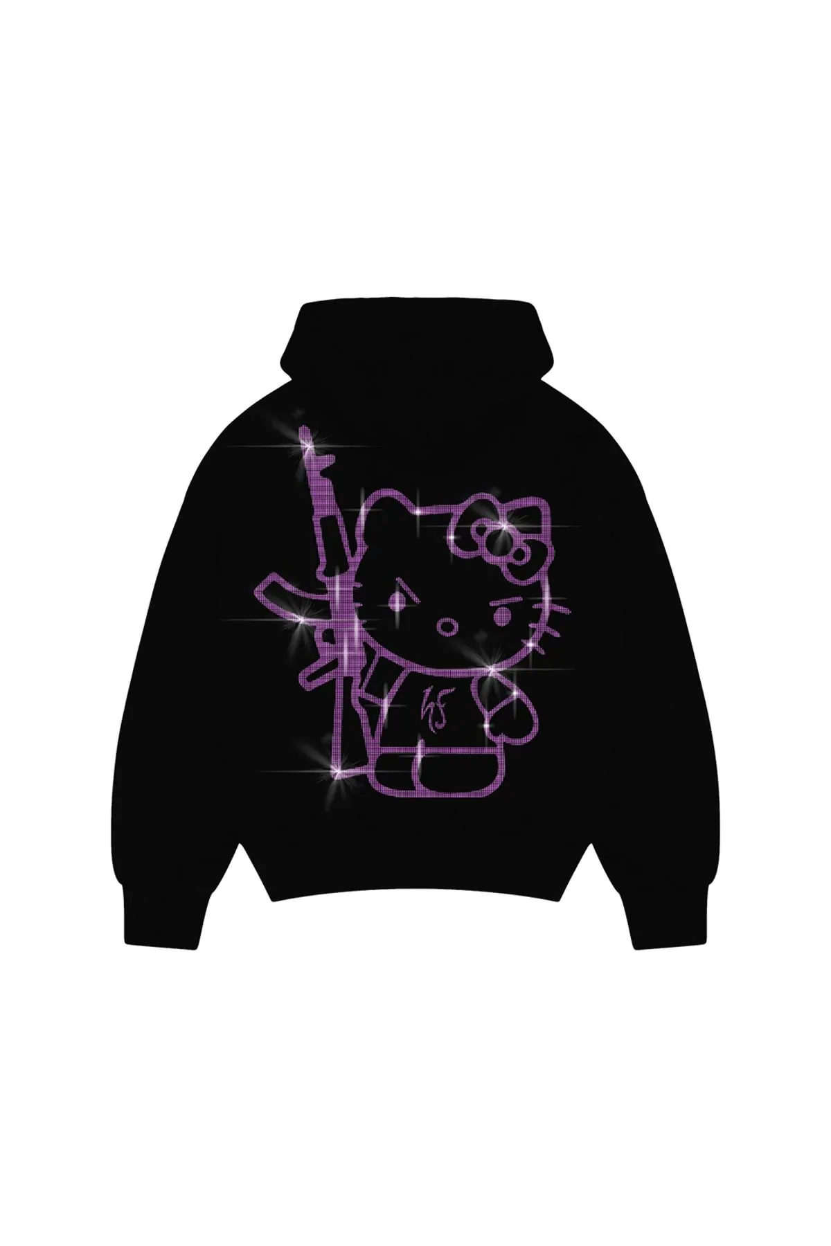 Kitty Rhinestone Taşlı Hoodie Sweatshirt