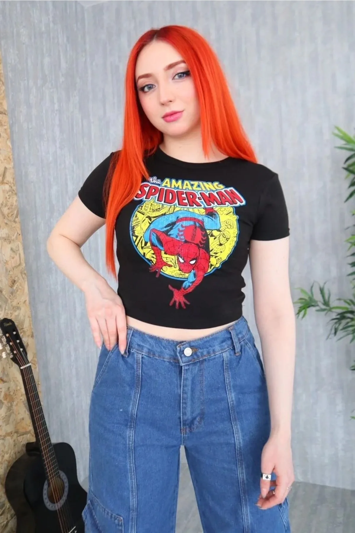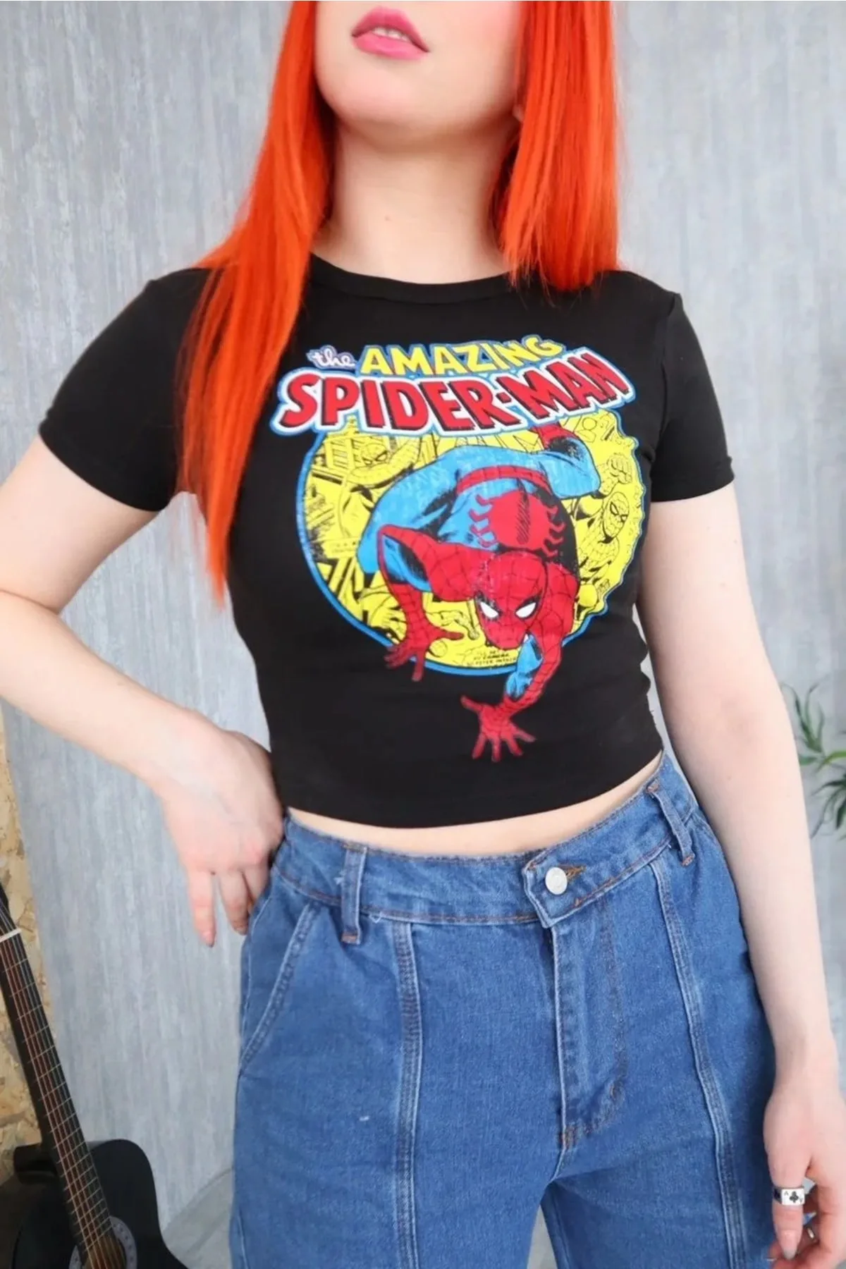 Y2k Spiderman Siyah The Amazing Spiderman Crop Top