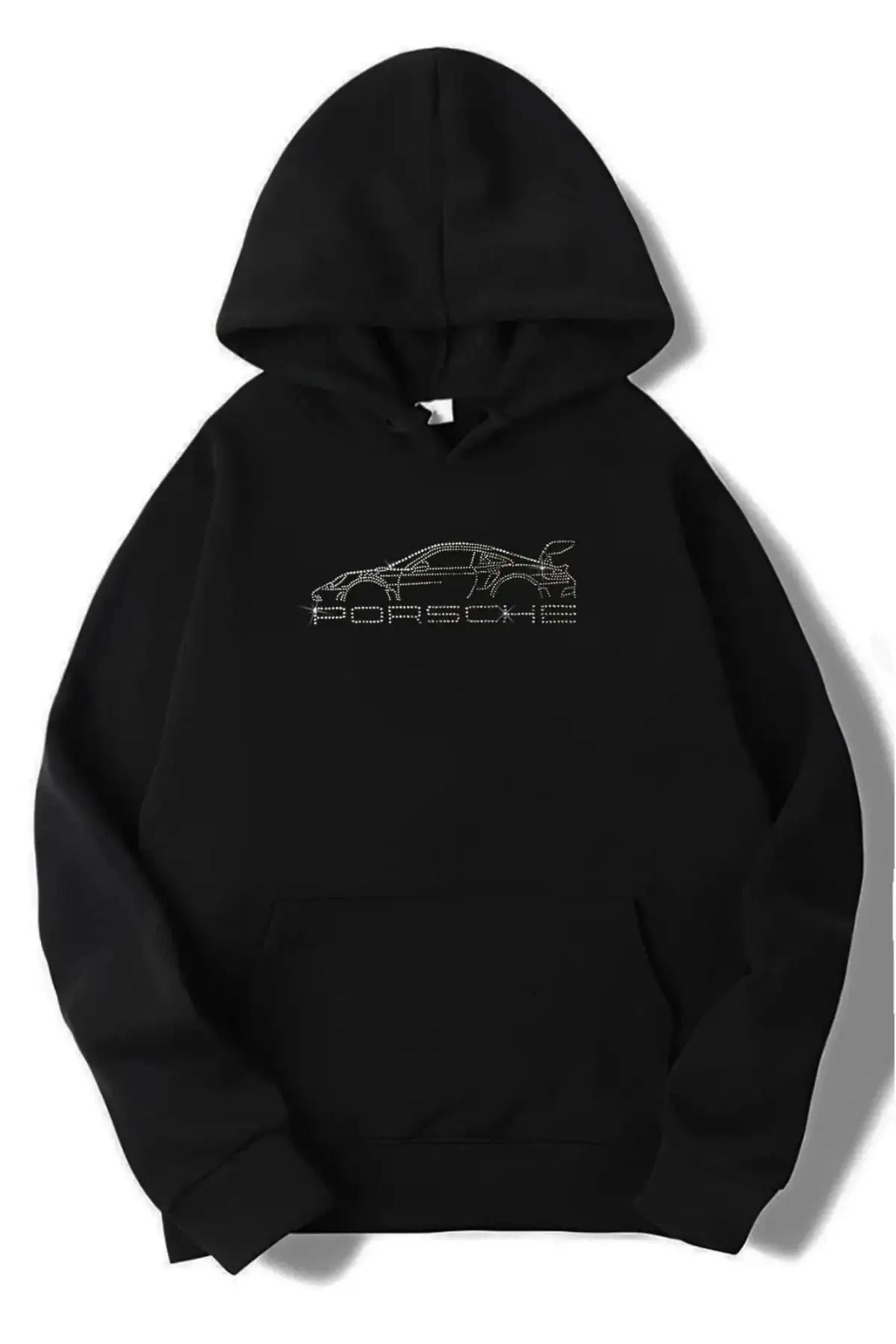 Y2K Unisex Oversize Taşlı Porsche Hoodie Sweatshirt