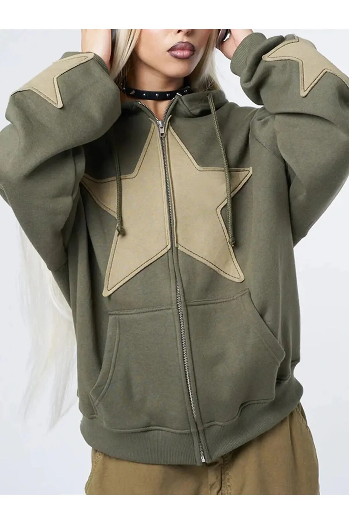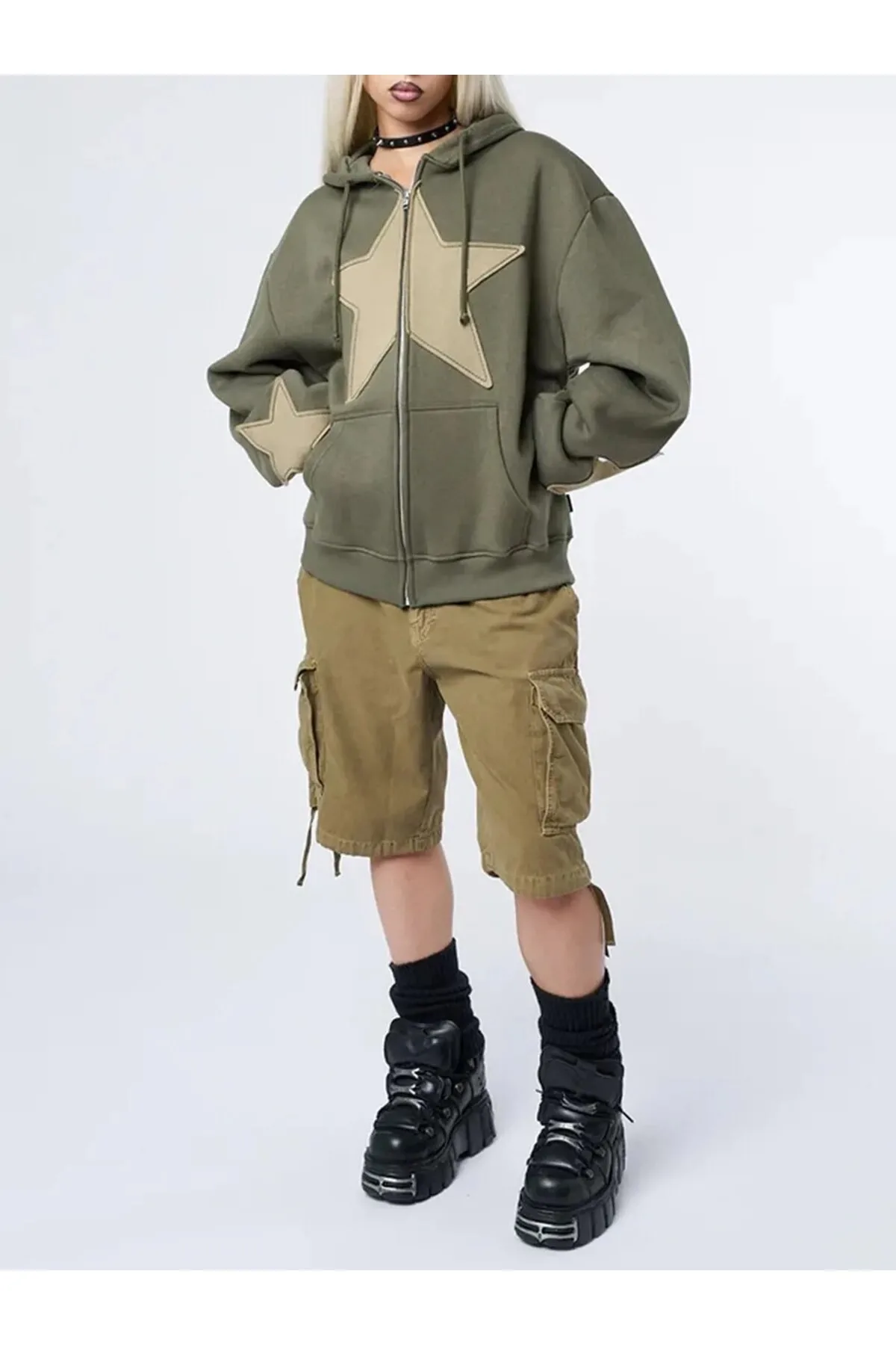 Y2K YILDIZ DETAYLI HAKİ HIRKA