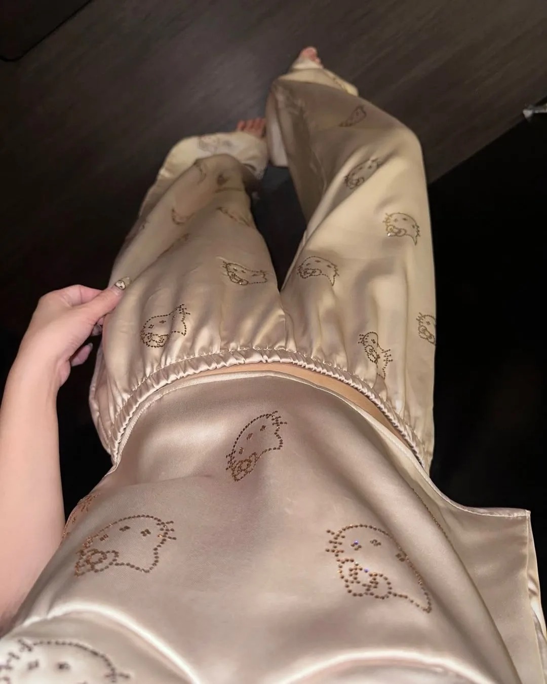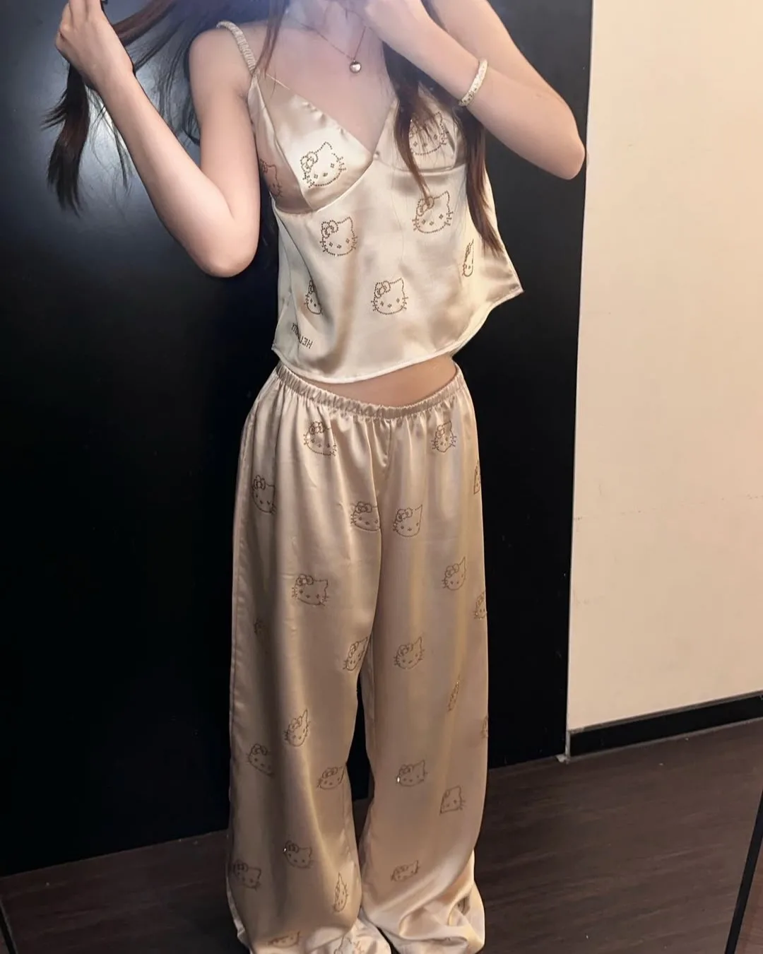 Bej Hello Kitty Taş Baskılı Pijama Takımı