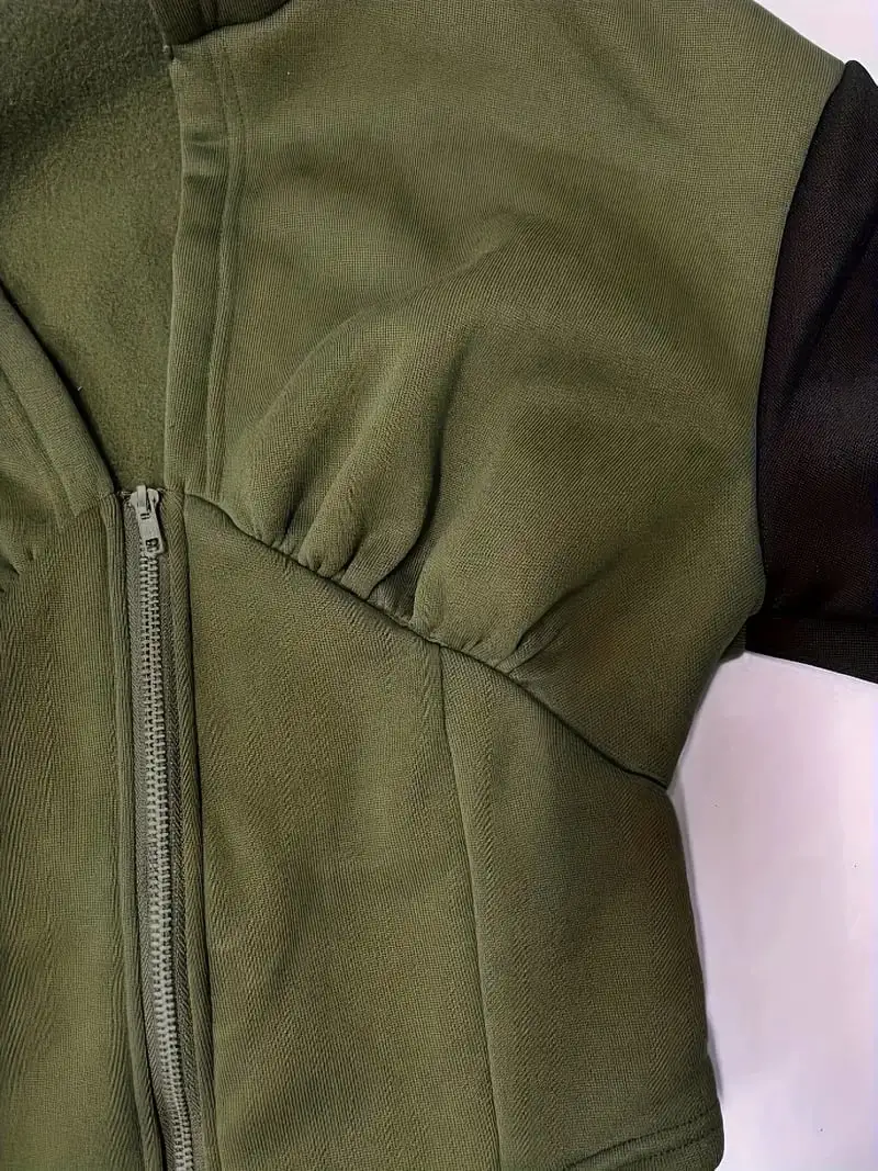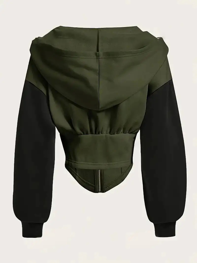 Yeşil Uzun Kollu Korse Kesim Fermuarlı Ceket