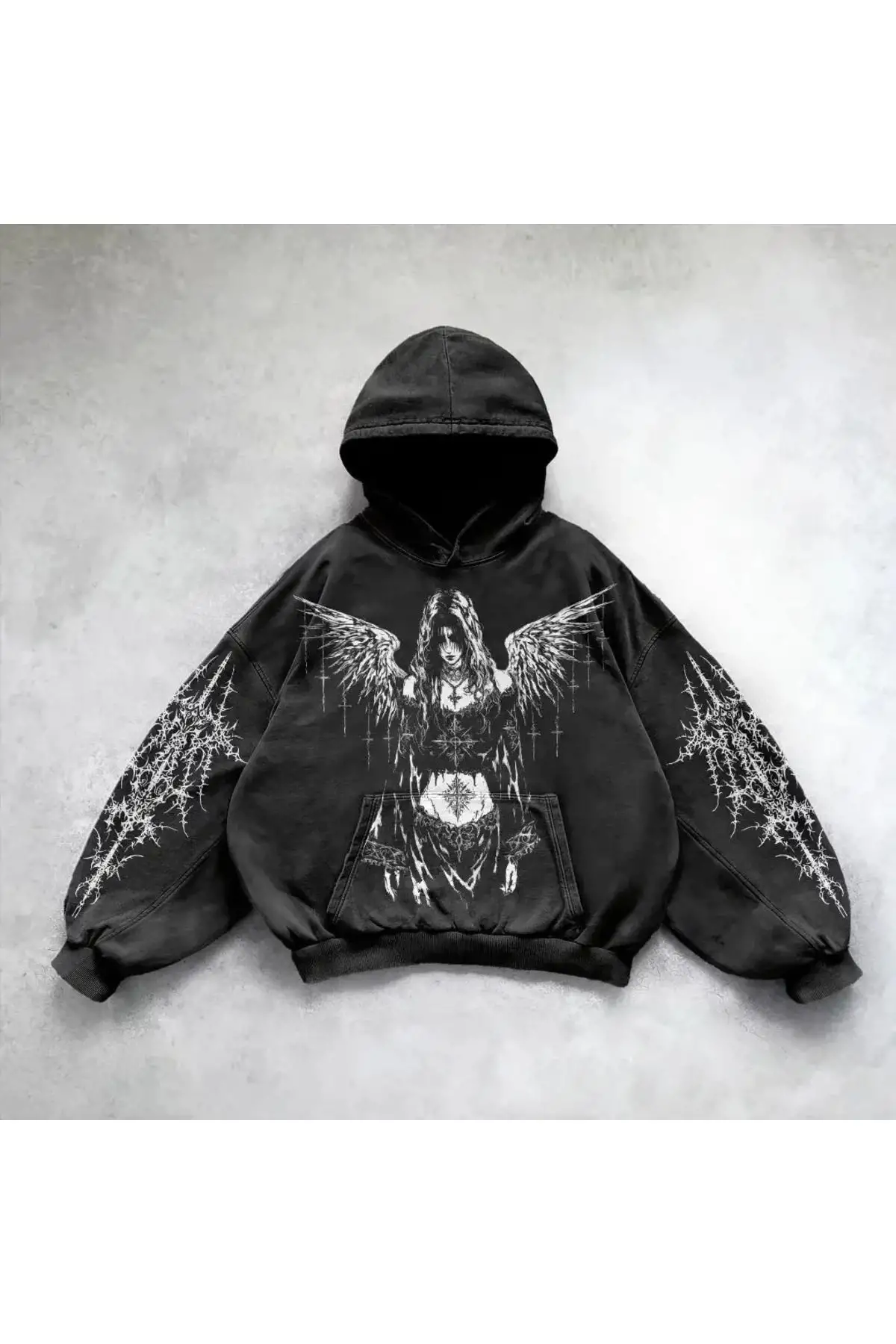 Yıkamalı Angel Wings Women Gothic Kapüşonlu Sweatshirt