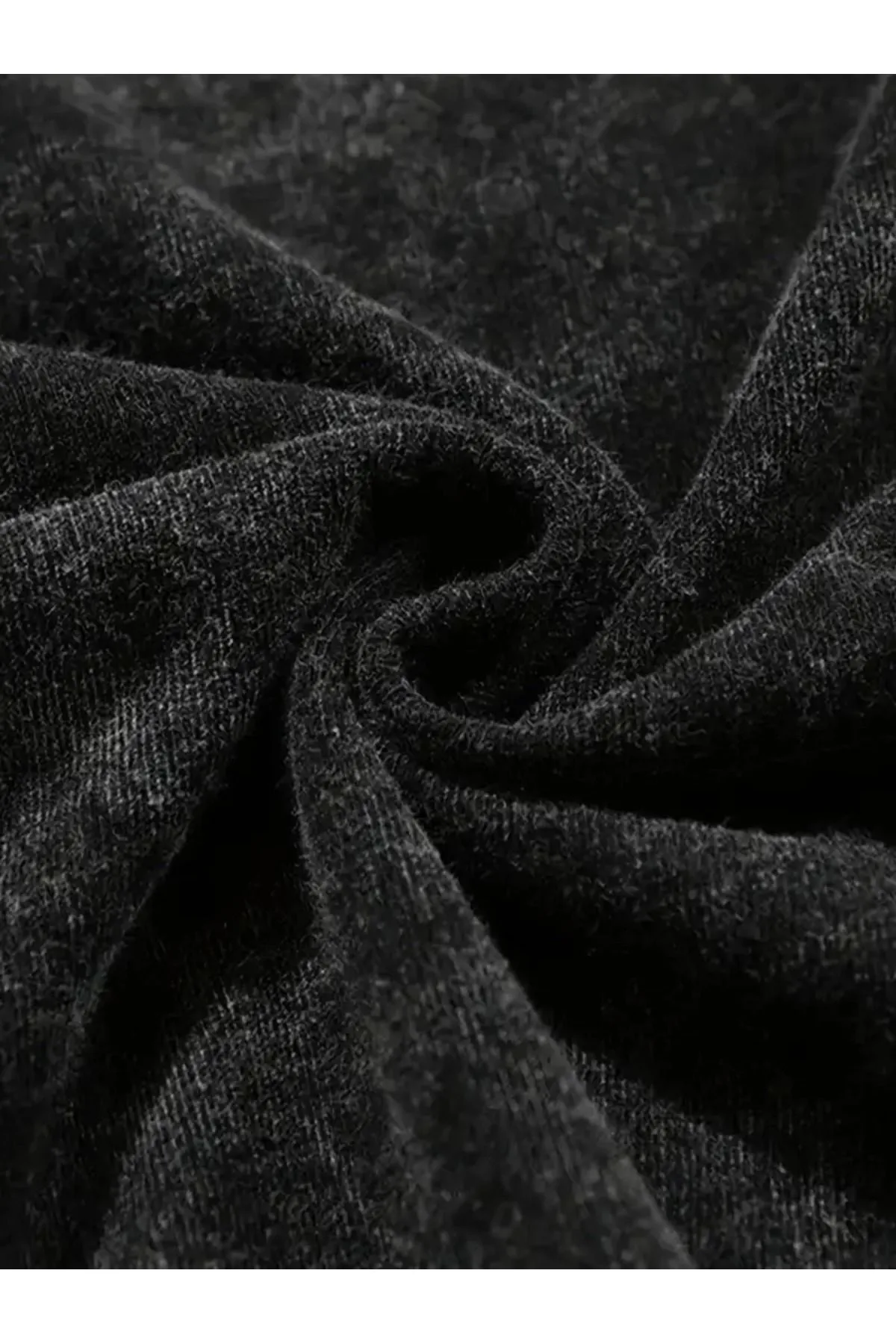 Minimal Nakışlı Siyah Bisiklet Yaka Kazak