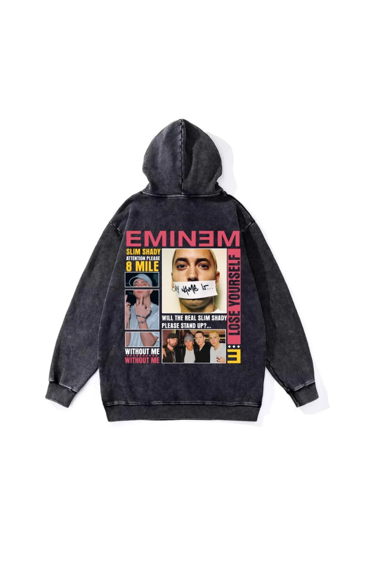 Yıkamalı Eminem Vintage Kapüşonlu Sweatshirt