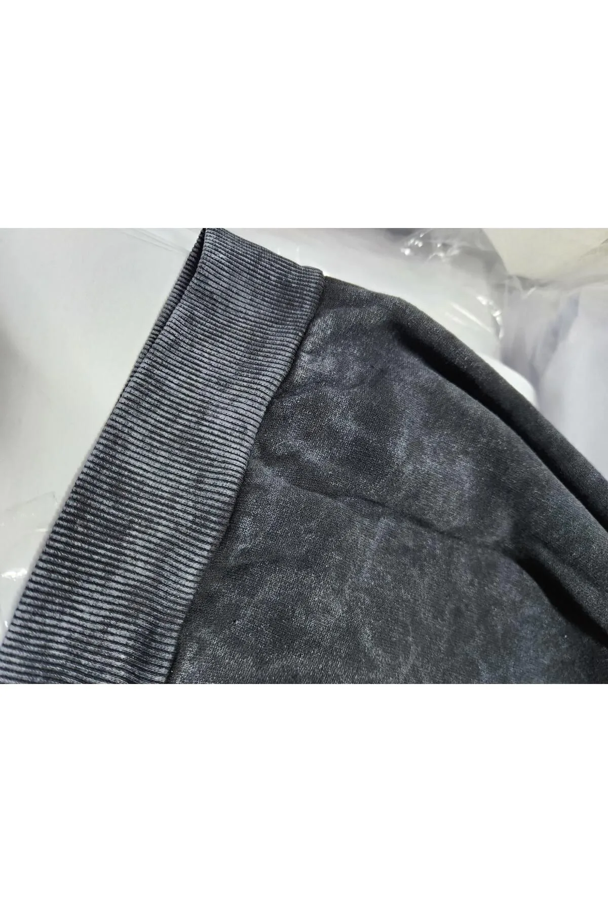 Siyah Acid Wash Aplike Nakışlı Oversize Premium Sweatshirt
