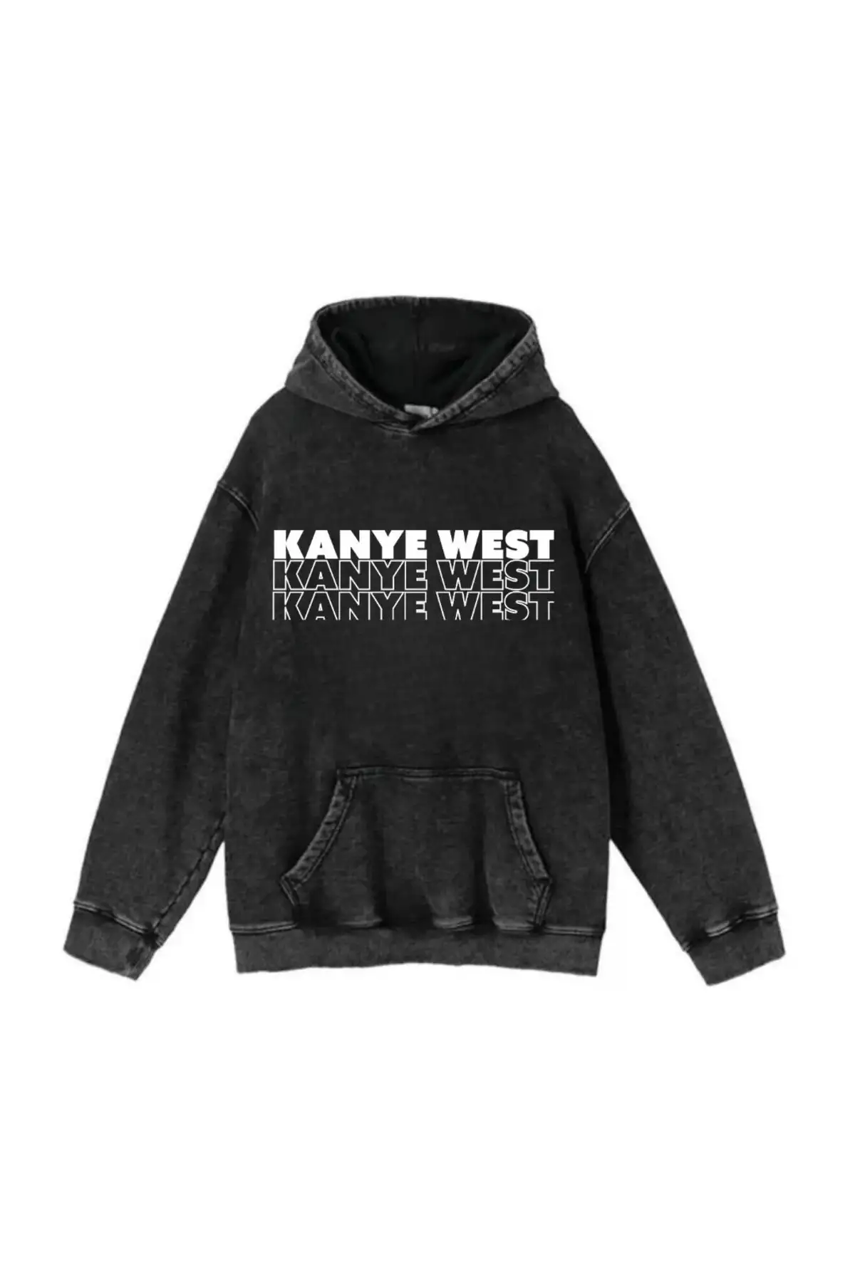 Yıkamalı Kanye West Vintage Kapüşonlu Sweatshirt