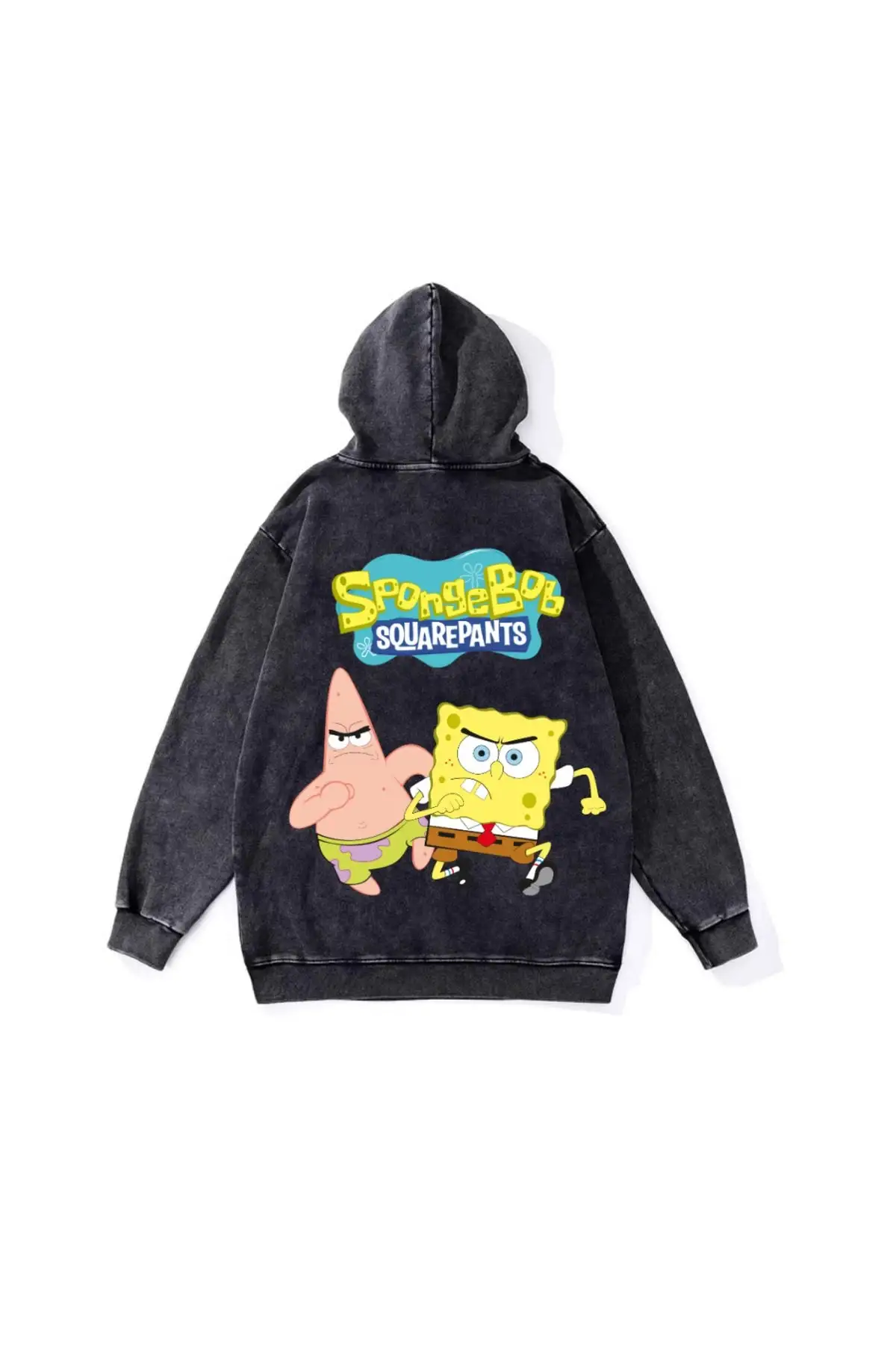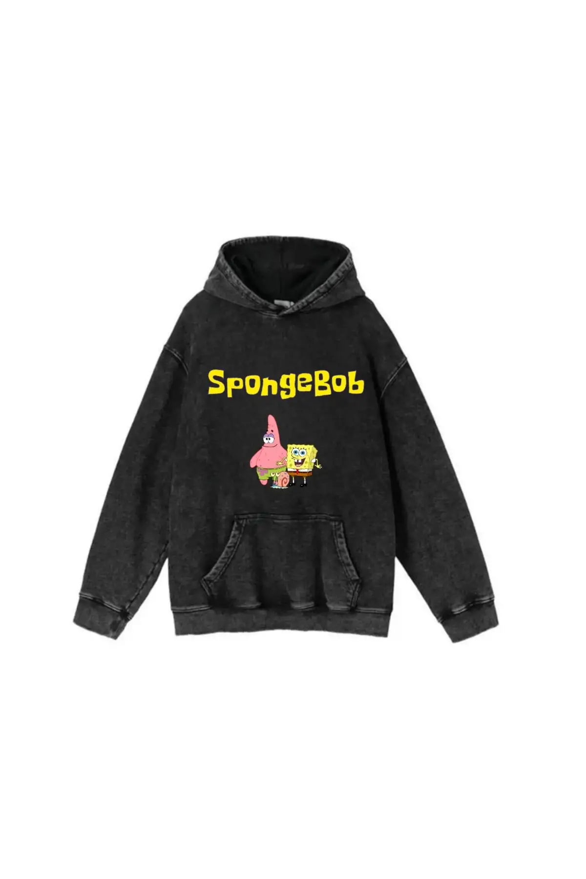 Yıkamalı Sponge Bob Vintage Kapüşonlu Sweatshirt