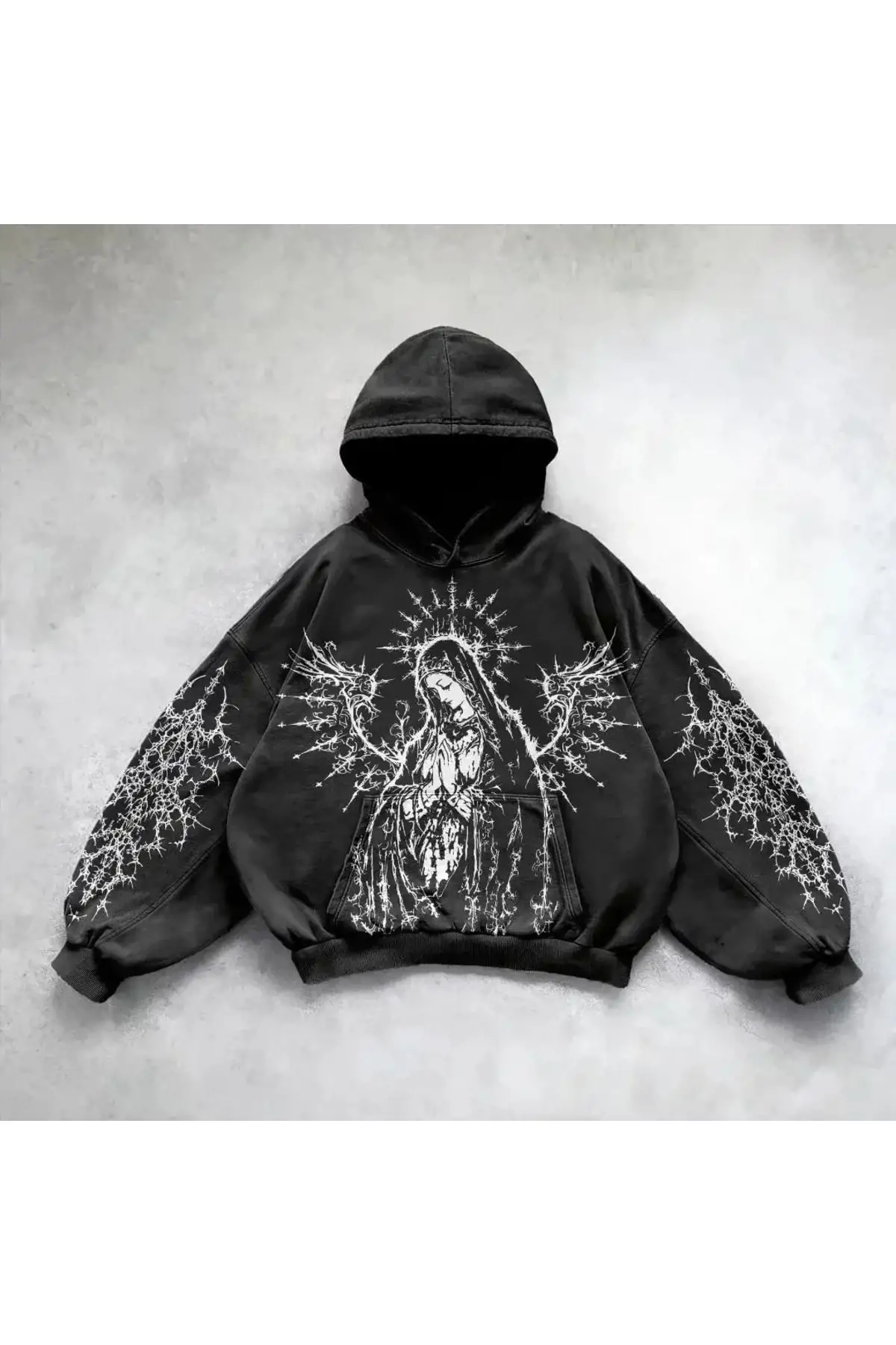 Yıkamalı Warrior Angel Woman Gothic Kapüşonlu Sweatshirt