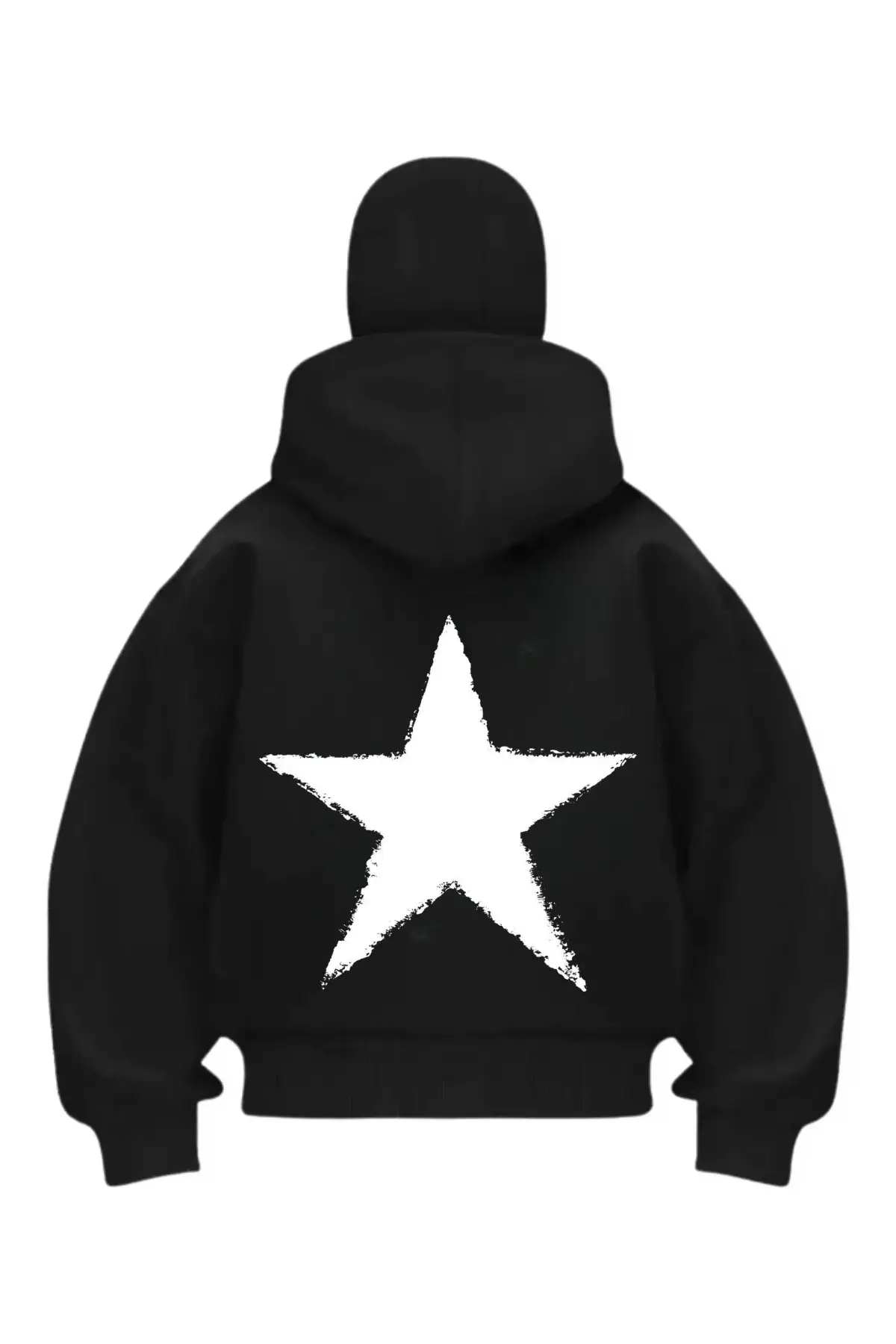 Yıldız Baskılı Siyah Samuray Kar Maske Sweatshirt Hırka