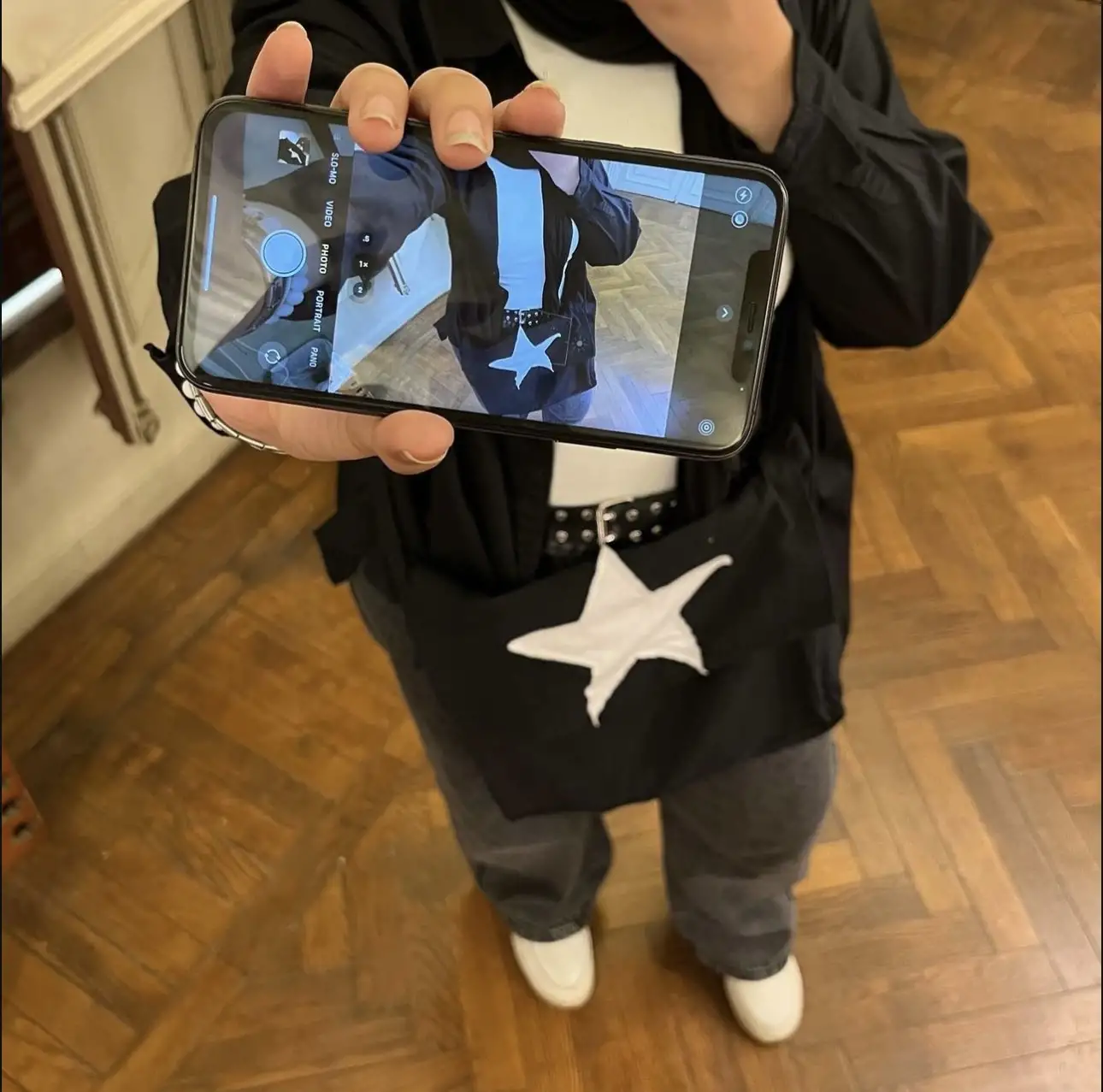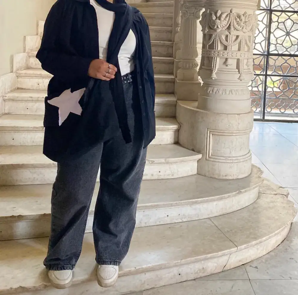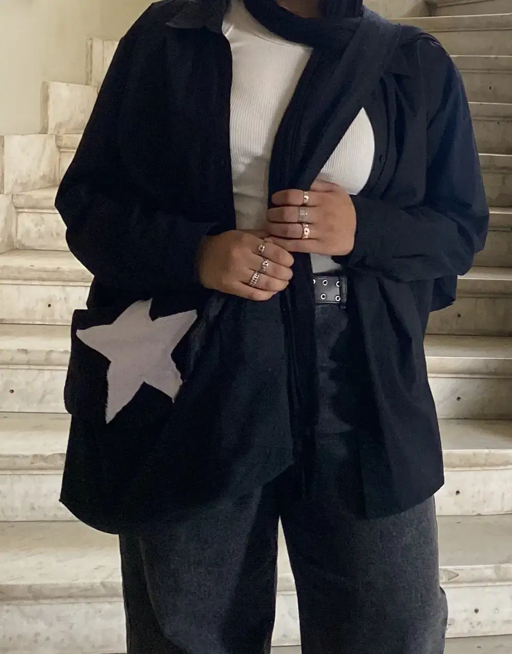 Çizgili Flower Siyah Oversize Unisex Ceket